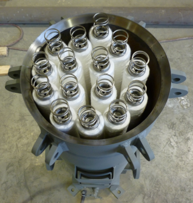 Vertical filter housing with elements installed